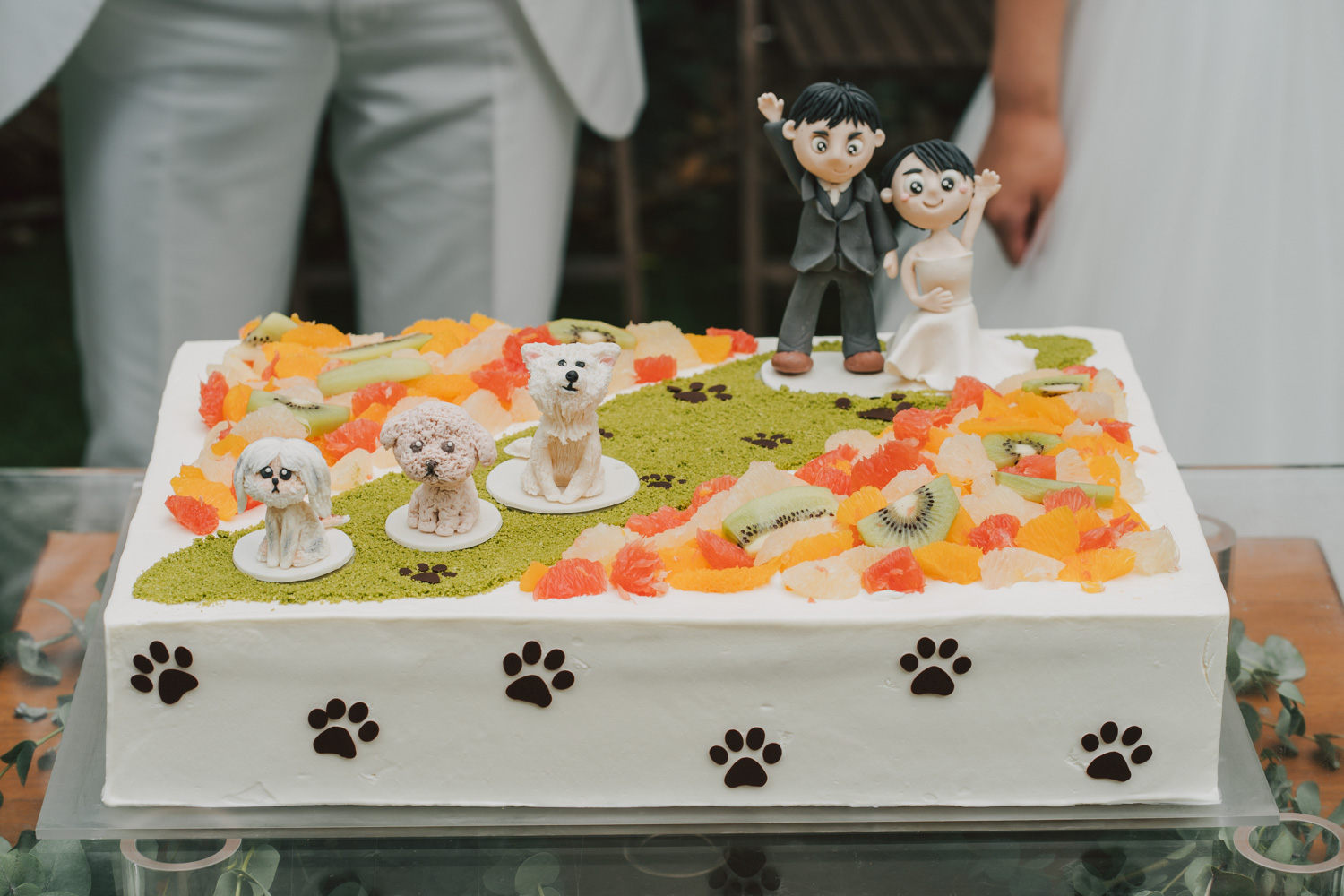 おふたりの愛犬も一緒にケーキへとデザインしました