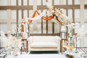 今回私からご紹介させていただくのは当日会場に飾るお花やおふたりが座るメインのお席のお花についてです