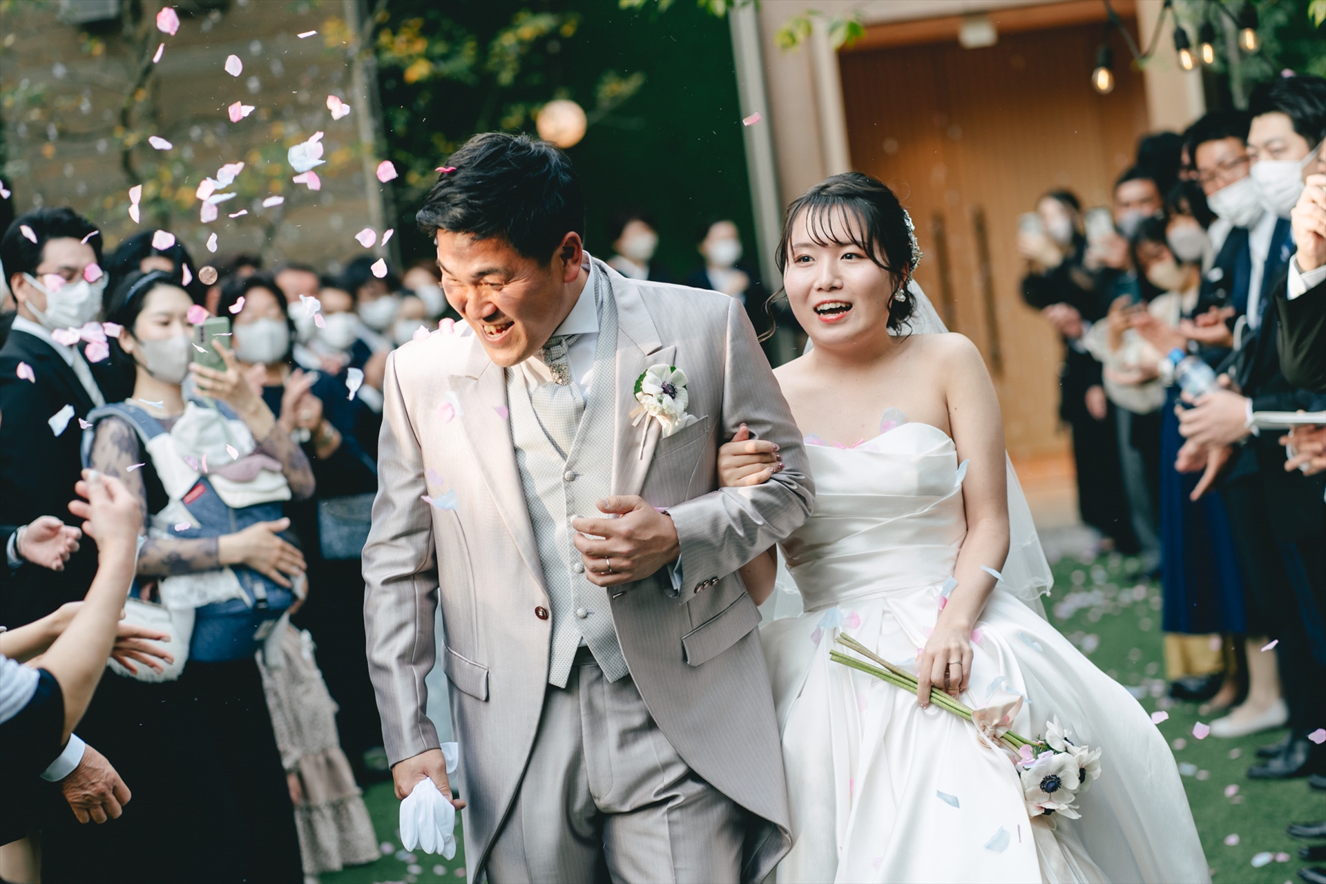 まずはフラワーシャワーでおふたりを迎えます