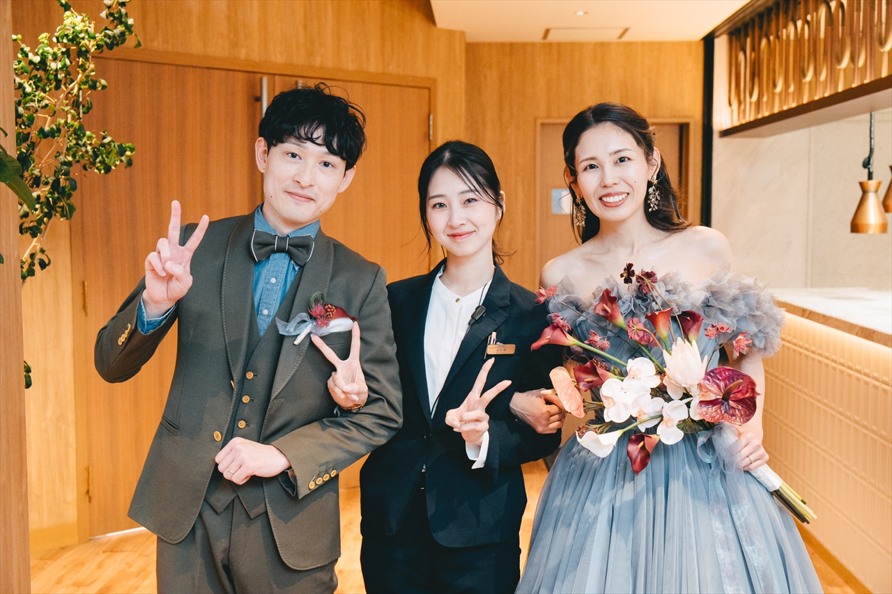 エスコート役の紹介をおふたりからしていただき手を繋いで腕を組んでご退場です