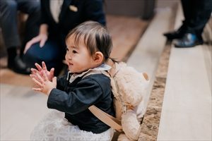 指輪の交換ではリングガールのゆらちゃんとぺぽくんに届けてもらいました