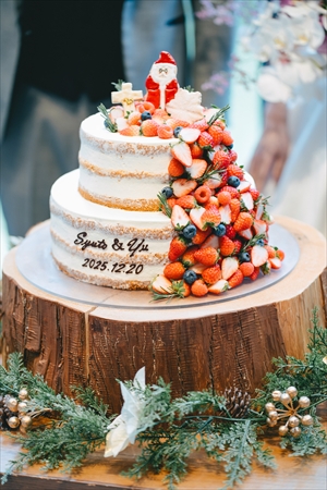 クリスマスをイメージしたサンタさんが乗っているウェディングケーキ