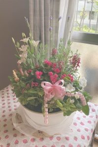 りゅうやさんがなおさんの好きなアジサイの花束をプレゼントし