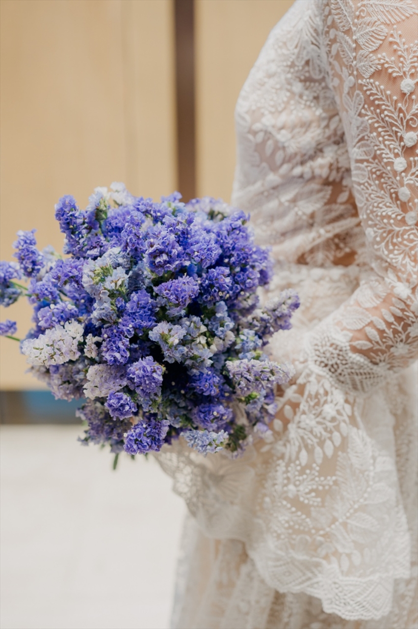 紫のスターチスだけを使ったブーケがほのかさんにとってもお似合いでした
