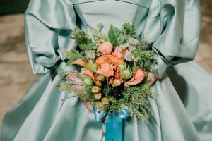 カラードレスは水色でゲストの方手作りのブーケで登場されました