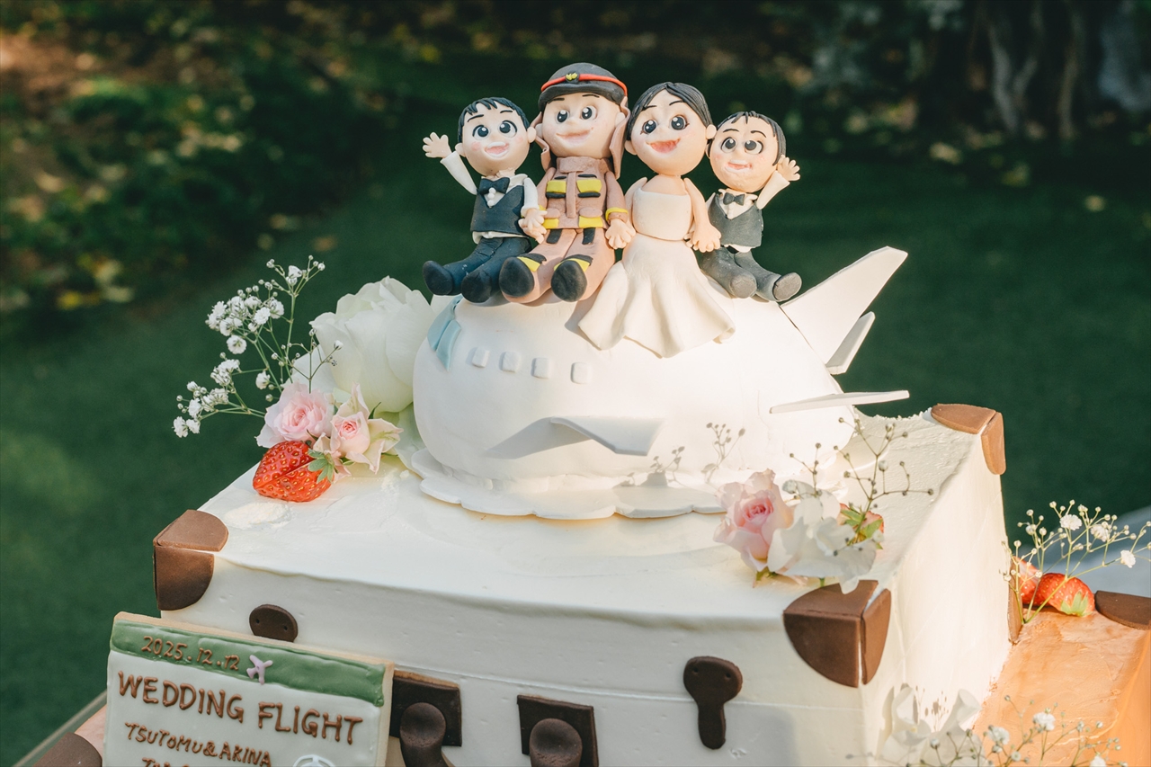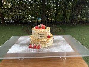 お二人がミルクレープが大好きと言うのをお打ち合わせでお聞きし、ウェディングケーキをミルクレープにしました!親族の方のみの結婚式だったので少し小さめなのもポイントです!